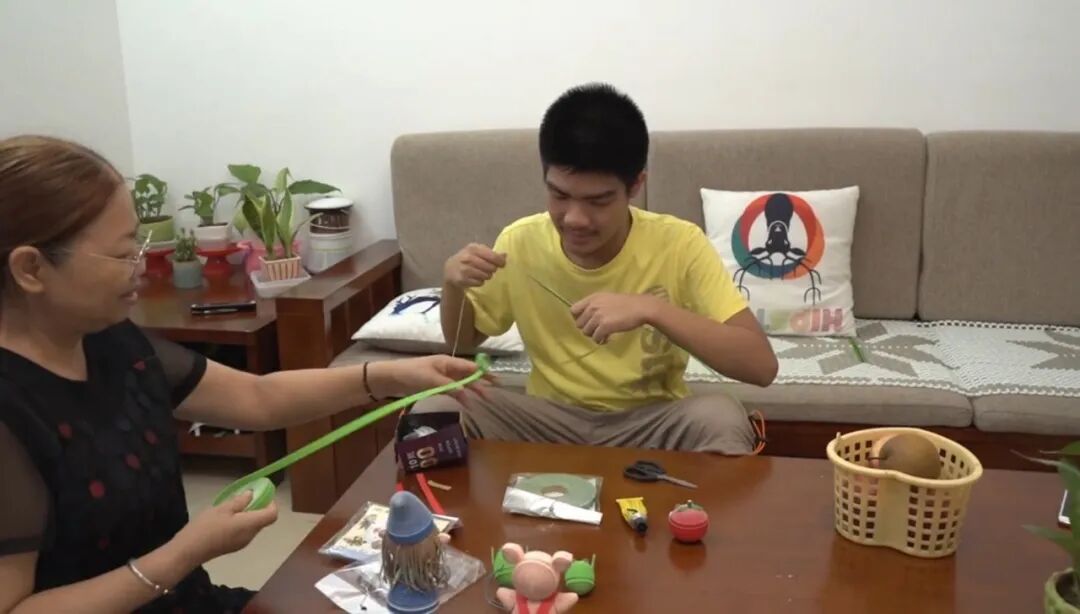 锐华妈妈提着的心终于放了下来,满脸笑容地在旁边夸奖他真棒。其实在锐华小的时候, 她就十分注重对他的生活自理能力进行培养,虽然比普通孩子晚一些,锐华还是学会了自己穿衣服,自己洗漱。初中开始,她还会在冰箱上贴上一些家务以及做家务的报酬,扫地2元一次、洗衣服3元一次...在妈妈耐心且重复地教导下,现在的锐华会自己煮饭,甚至炒一些简单的蔬菜。他也逐渐有了金钱的意识和理财观念,当拿到做家务赚到的零花钱,锐华会去买一些自己喜欢的东西,比如手机。他还说等以后赚到钱了,就给家人买礼物。