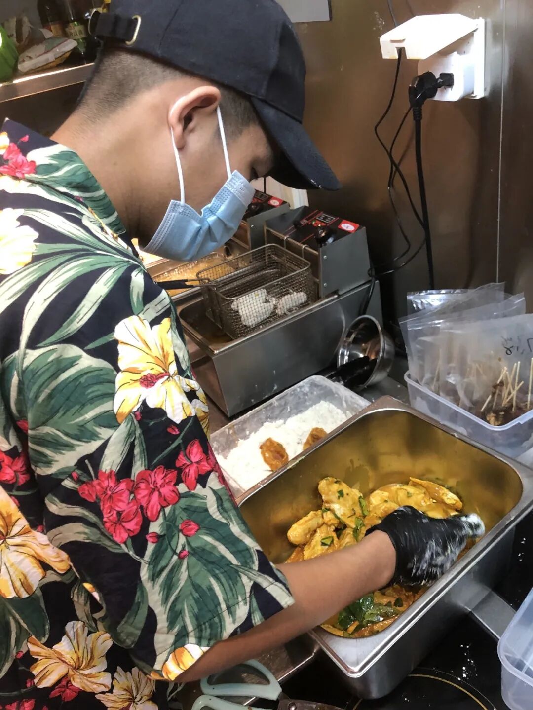 锐华无心在意这些好奇的目光,他只是牢牢地盯着别人的动作,努力记住裹粉的步骤。很快,他进入了自己的世界,全然屏蔽了外界的这些声音和目光。他专注且耐心,近乎小心翼翼地在给鸡块裹粉,好像在进行一个严肃的仪式。当然,他还是裹得比较慢,跟麻溜快速不沾边。再过一会,周围的人不再好奇,纷纷散去。