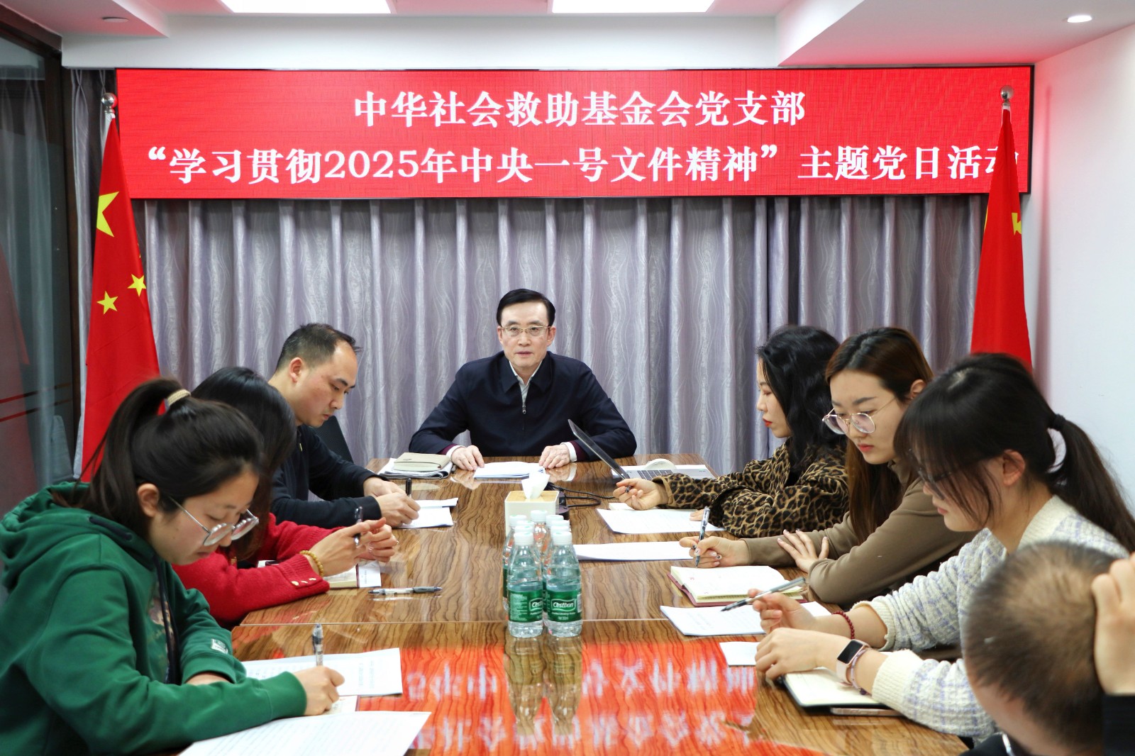 2月26日下午,中华社会救助基金会党支部开展“学习贯彻2025年中央一号文件精神”主题党日活动。全体党员及入党积极分子参加活动。
