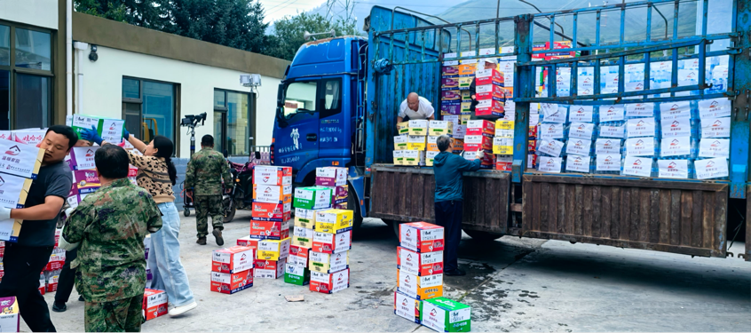 基金会迅速启动驰援甘肃榆中灾区工作。首批救灾物资连夜调运。8月8日紧急调运方便面6000桶、矿泉水7200瓶、面包2000袋、火腿肠24000根、八宝粥9600罐,于8月9日运抵榆中县马坡乡。8月9日晚,向榆中县马坡乡捐赠雨衣200件,雨靴200双,手电200个,发电机(5KW)15台,升降应急灯5台。已运抵,10日已向马坡乡、小康营乡受灾村受灾群众分发。